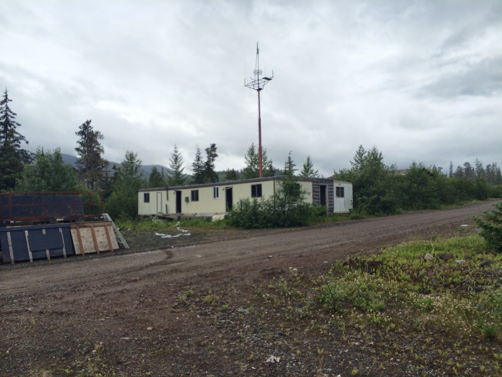 I'm pretty sure this is a section of bunkhouse. They were usually made up of Atco trailers connected by walkways. Two guys would share one room. There was about 250 people that lived in camp at one point. It was one of the larger logging camps in Alaska.